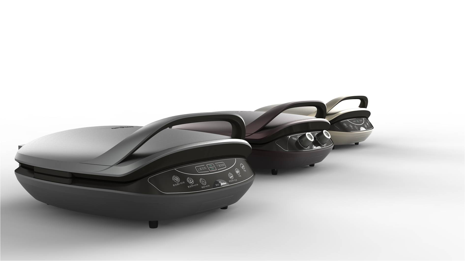 這款美的二代煎烤機最出彩之處在于烤盤把手設(shè)計,充分考慮造型、受力與上蓋形狀三者之間關(guān)系,并最終找到了合適的解決方案,把手外觀流暢動感,操作便捷。